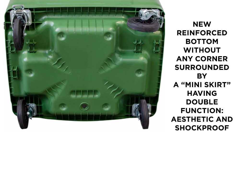 YES! We ship Australia wide: if you require freight, please request Quote for custom Delivery BEFORE Checkout. Please follow steps below to receive Freight QUOTE to your destination. STEP 1. If you require DELIVERY, contact us on sales@mgplastics.com.au with your full name, destination address, contact number and products. BEFORE making a payment to receive Delivery Quote first. STEP 2. Click HERE to enter quoted Freight Fee amount and Add to your Cart. (NOTE: if you do not Add Freight Fee, your Order will not be completed and will not be shipped ) STEP 3. Proceed to Checkout, complete your order and payment. | Heavy Duty 1100 Litre 4 Wheel Plastic Bin - NEW Range in Green colour comes with 4 Wheels that are made in Italy Ideal for use in a commercial setting The Heavy Duty 1100 Litre 4 Wheel Bin from MG Plastics is a multi-purpose Large-size mobile waste bin, with a robust grab handle and large wheels for ease of movement. The bin is injection-moulded from a specially designed HDPE plastic which is resistant to decay, frost, heat and chemicals. It is fitted with a corrosion-resistant steel axle and solid rubber tyres to ensure a long service life in even the harshest of environments. Recommended applications include: - Apartment blocks