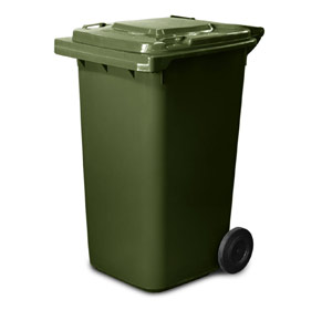 The dark green 240-litre wheelie bin from MG Plastics is a multi-purpose mid-size mobile waste bin, with a robust grab handle and large wheels for ease of movement.