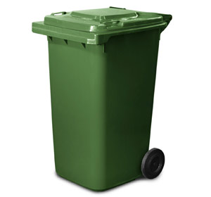 Nature green 240 Litre Wheelie Bin with dark green lid and dark green body comes with 2 Wheels.