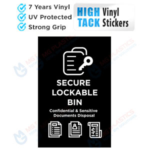 Black Rubbish Bin Secure Documents Waste Sticker, High Tack Vinyl Waste Bin Label Sticker, Recycling Label