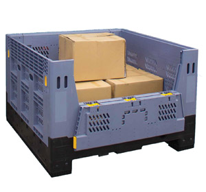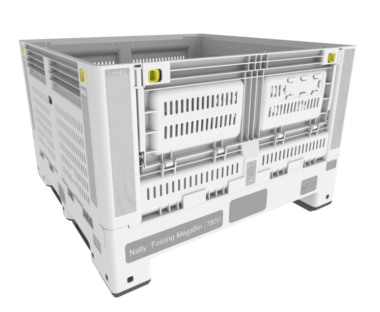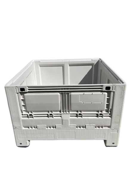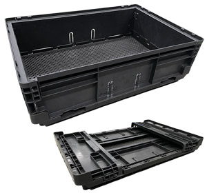 Folding Half Bin Vented 750L Litre & 780H high Plastic Collapsible Pallet Bin and a small size Plastic Folding Half Bin Vented 470L Litre & 560H High Collapsible pallet bin.