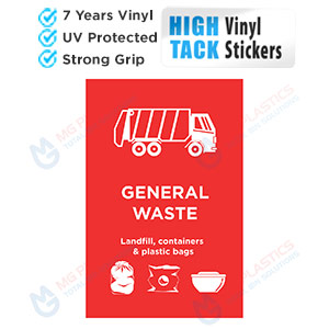 Red Rubbish Bin General Waste Sticker, High Tack Vinyl Waste Bin Label Sticker, Recycling Label