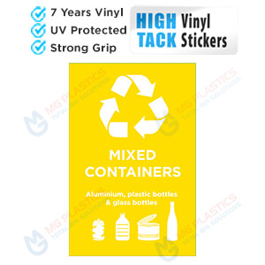 Yellow Rubbish Bin Mixed Containers Waste Sticker, High Tack Vinyl Waste Bin Label Sticker, Recycling Label